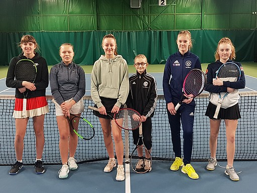 Mot Kristianstad spelar från vänster till höger Julia, Emilia, Hanna och Tova. Kristianstad representeras av från vänster till höger Matilda Olsson och My Johansson.